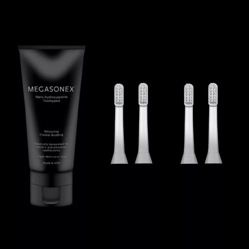 Megasonex enamel-building toothpaste + 4 medium replacement heads